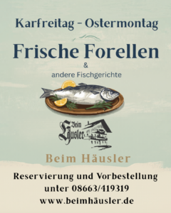 Mittlerweile hod si da „Häusler“ über die Jahre etabliert. Hiesige Stammtische haben hier ihre Heimat gefunden und Veranstaltungen jeglicher Art werden abgehalten. Angefangen von kleinen Hochzeiten, Taufen, Geburtstagsfeiern, Firmenessen, Weihnachtsfeiern, Versammlungen, Fasching für Groß und Klein, Musikabende bis hin zum Kartel´n …
